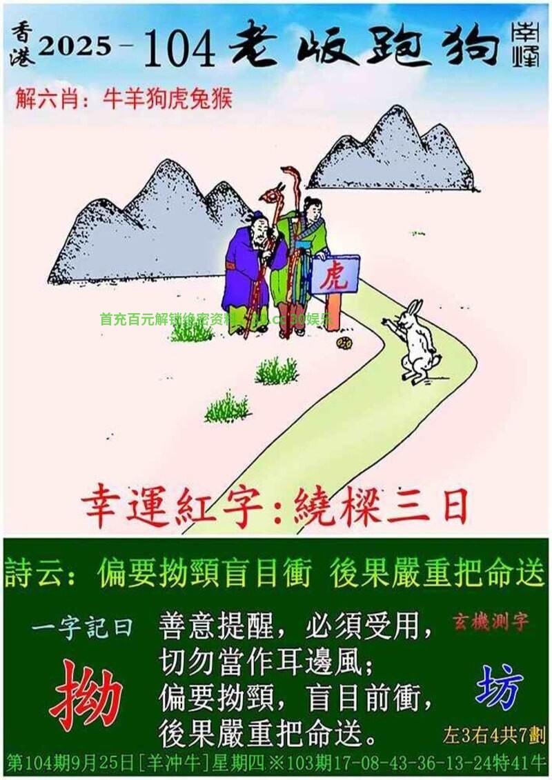 104期:八肖【虎蛇兔马猴鸡猪】开:狗32准